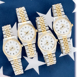 Personalize a United States Military veteran commemorative watch with birthstones and engraved initials.